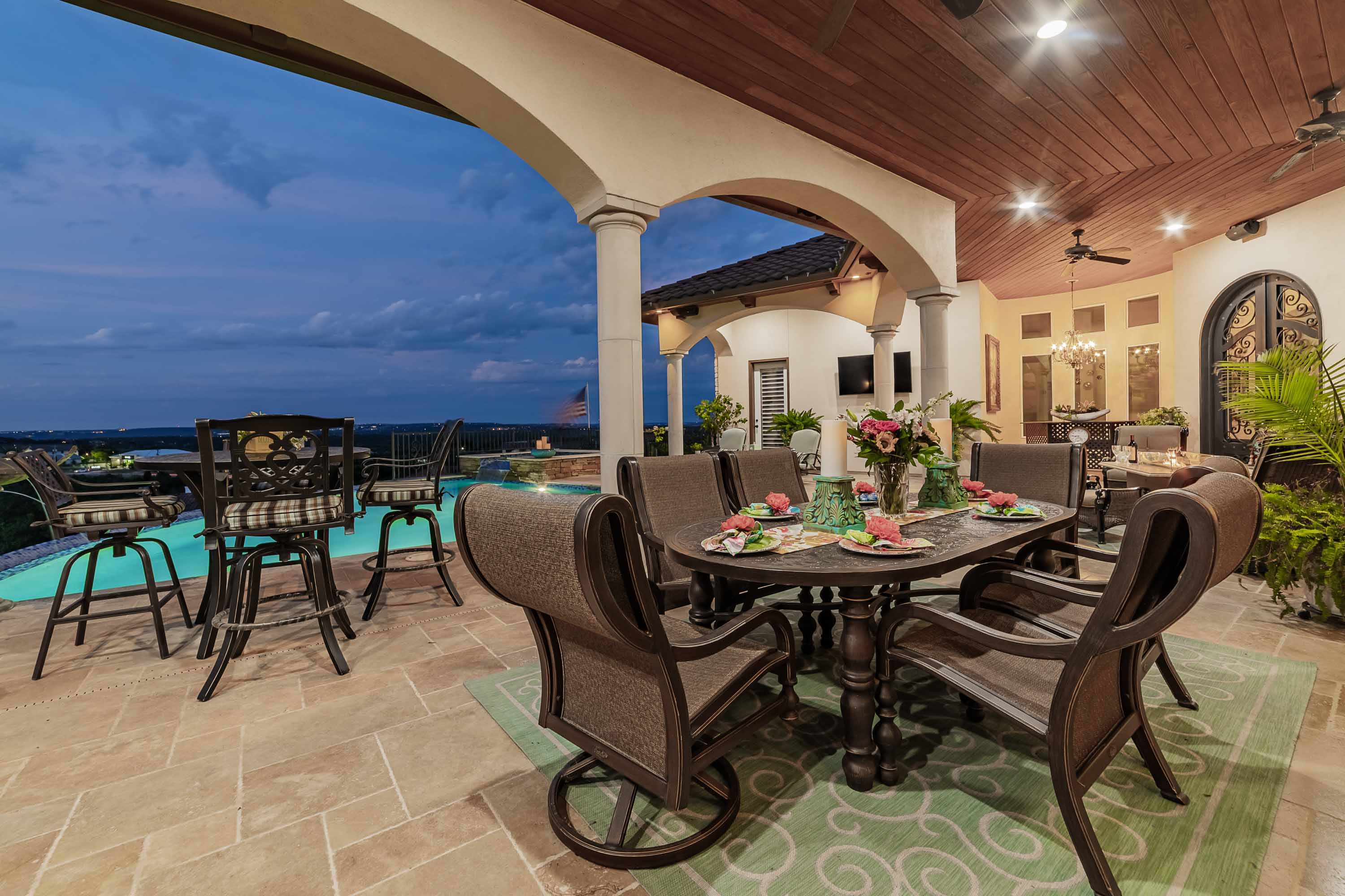 The owner’s retreat opens to 1,000 sf of covered outdoor living with summer kitchen, hot tub, and resort-style pool—perfectly oriented for year-round breezes. The suite also features an exercise alcove with views, a custom stone bathtub, and a triple-sized custom closet. Additional highlights include 3 oversized garage bays with storage and attic, granite windowsills, custom carved stone fireplace, plantation shutters, meticulous landscaping across 1.3 acres, and a low tax rate and HOA. Every room enjoys a view, every detail elevates the experience—an extraordinary chance to own the most visible and celebrated hilltop estate in Lakeway’s prestigious Bella Montagna.